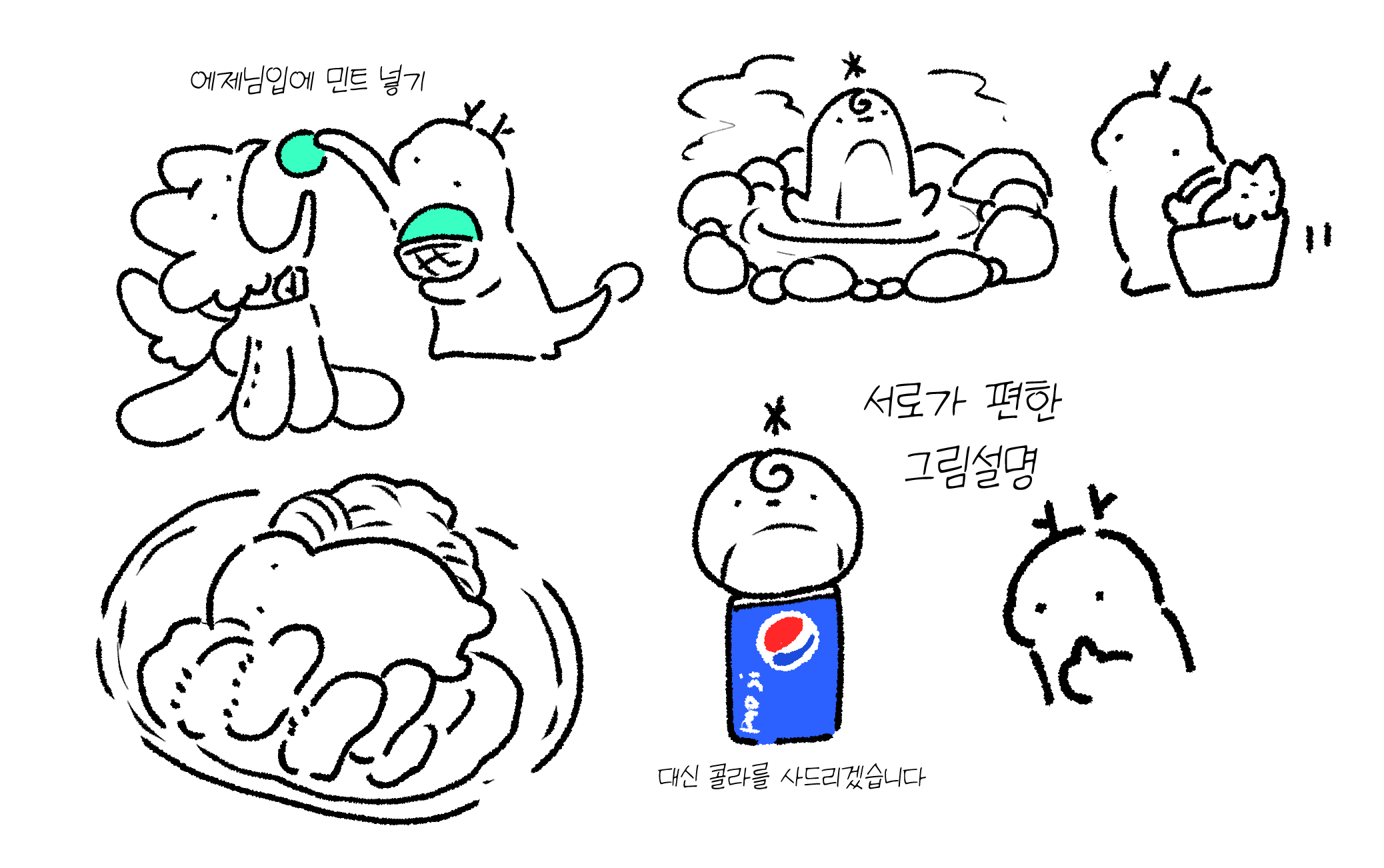 멸치,퍼언,잠룡,미양,와사비,이온,에제