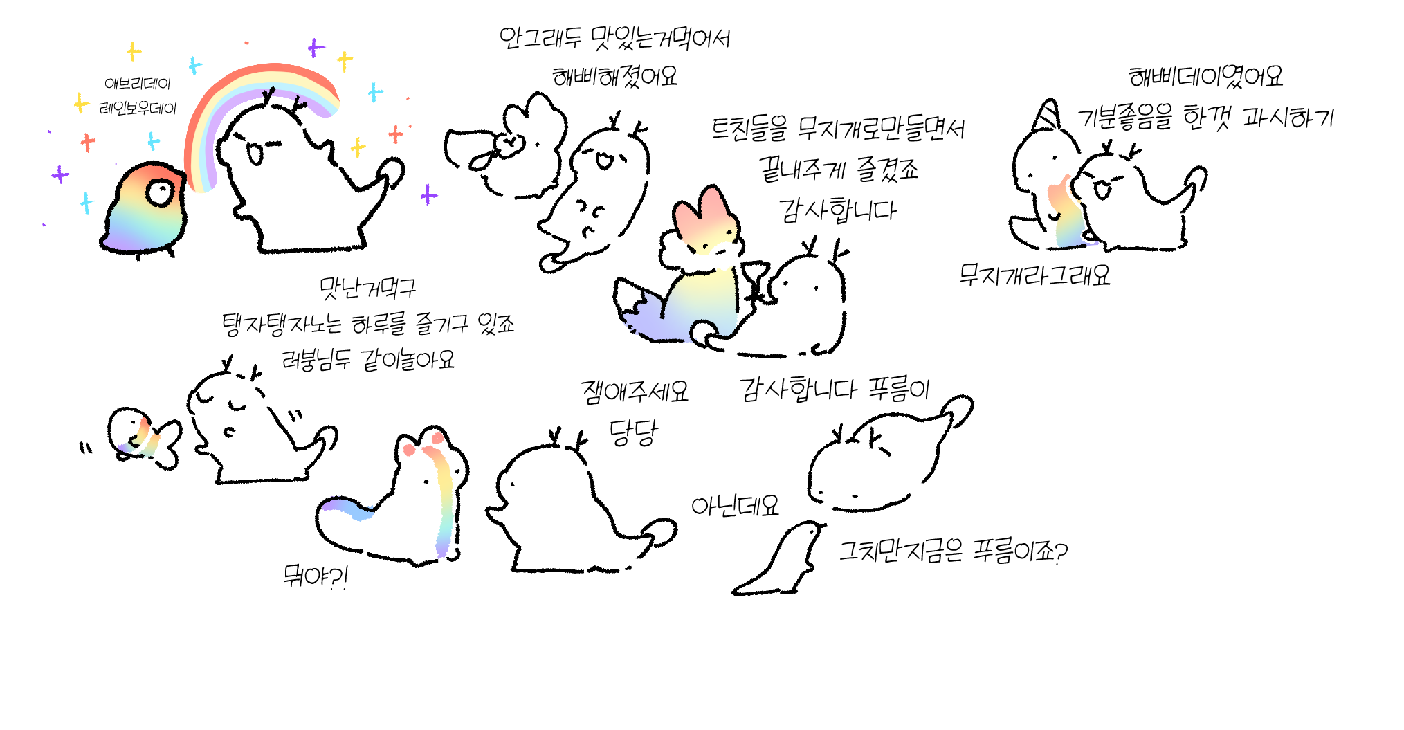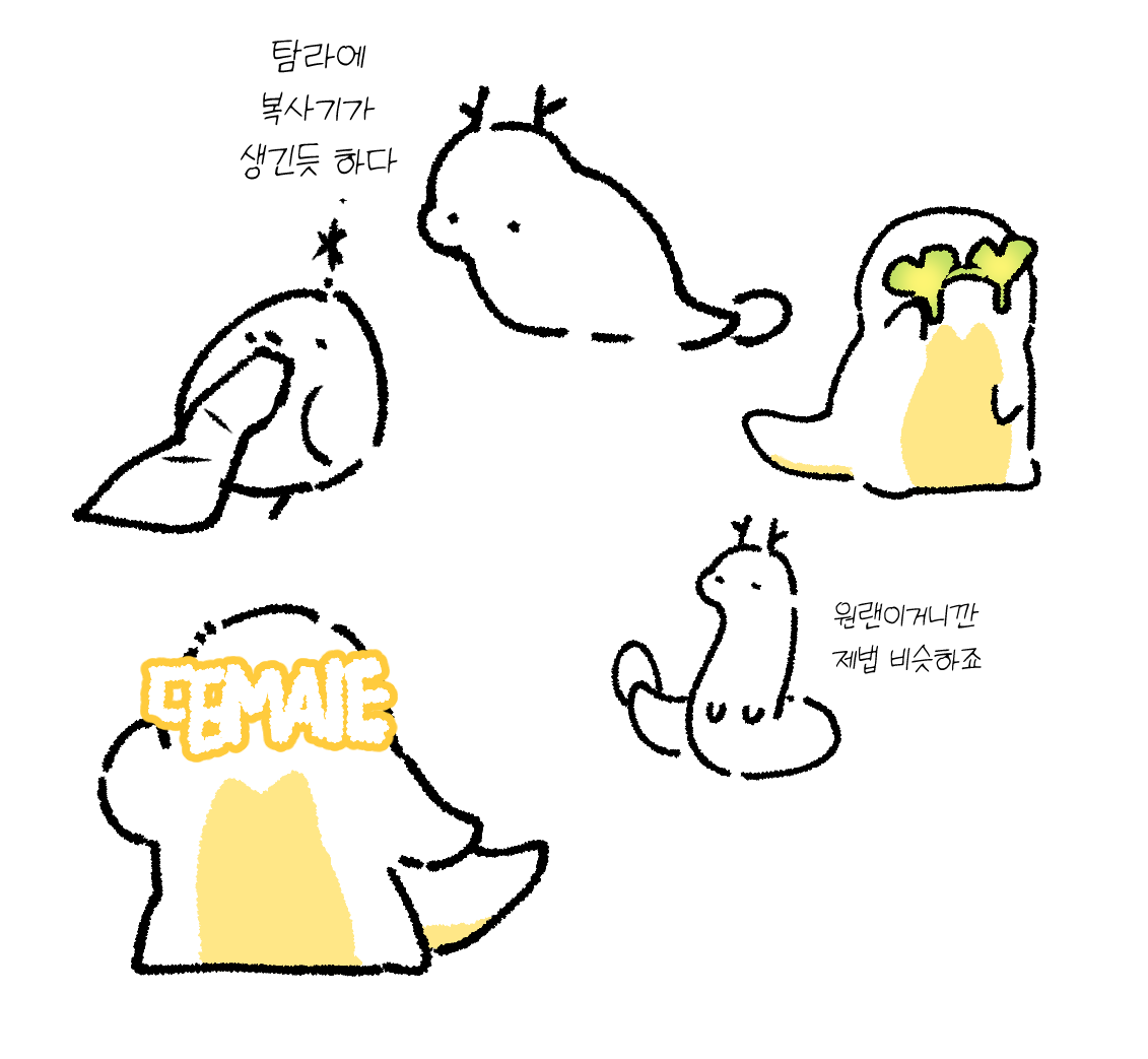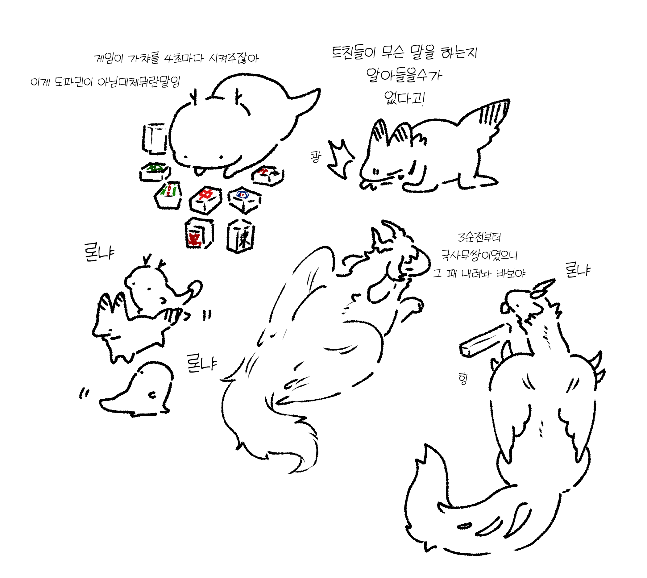 랄고,퍼언,러붕,블류,잠룡,겐키,샤오화