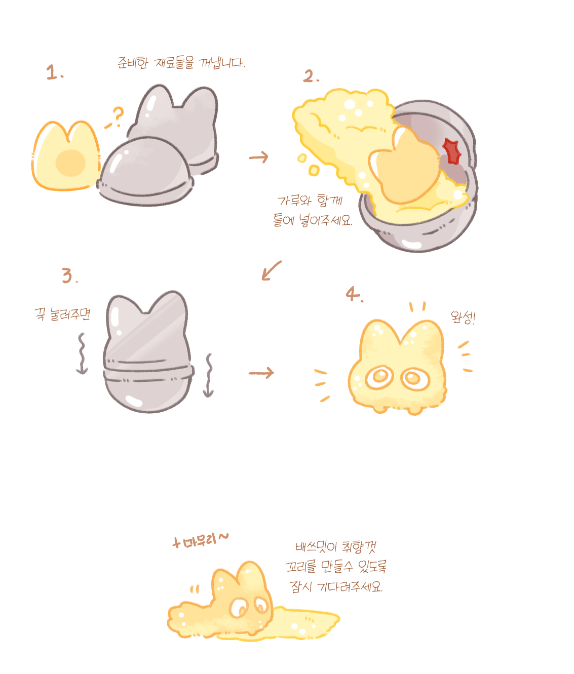 서늘한곳에서 하루동안 틀을 잘 말린후 조심스럽게 배쓰밋을 꺼내주세요.