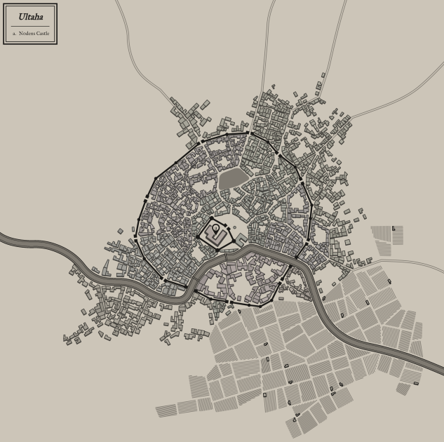 중앙에 왕궁,노덴스성이 기준이 됩니다. 강 아래 남쪽 부지(강남)에는 귀족가들이 모여있습니다. 북쪽 성벽 바깥의 건물들은 주로 기사 주둔지? 병사 주둔지? 입니다. 마수들이 위에서 밀려오면 병사들은 성벽 안으로 들어와 막아냅니다. 강줄기는 베르베니아 호수에서 갈라져 나온 것이며, 농경지는 이 강의 아래-남쪽-에 위치해 있습니다. 그리고 ...지도엔 본의아니게 안나와있는데 농경지 부분에 농경민들의 주거지가 있습니다 성 옆에는 외교관이나 왕궁의 외부 손님들이 머무는 건물이 위치해 있습니다. 왕궁의 앞에는 광장이 있고, 평소에는 그 가운데에 커다란 화로가 놓여져 있습니다. 북서쪽 부지는 시장이나 경매장, 길드, 여관 등이 모여있는 번화가입니다. 동쪽 부지는 식당, 소규모 가게, 여관, 길거리 음식점 등이 모여있는 상업지구입니다. 나머지는 주거지역입니다. 북쪽의 성 바깥 부지의 나머지 건물들은, 예전에 사용되었다가 마수의 잦은 침입으로 인해 버려진 주거구역입니다. 간혹 돈이 없는 용병들이나 외지인들, 산지기들이 이곳에서 하룻밤을 묵어가기도 합니다. (근데 안전과 방한은 보장 못하는.) 성벽 바깥의 북서쪽 부지는 허허벌판입니다. 어떠한 나무도 자라나지 못하는 땅으로, 그렇다고 농경지로 쓰기엔 위험하여 방치된 평야입니다. 간혹 기사, 병사들의 훈련지로 사용되기도 합니다. 성내 북쪽 부지에는 커다란 공원이 있습니다. 이곳에는 사시사철 에리나가 피어있기로 유명하기도 합니다. 젊은 연인들이 이곳에서 사랑을 속삭이는 곳이기도 하죠. 그 위로는 왕립 아카데미 가 존재합니다. 제국의 아카데미처럼 거대하지는 않지만, 예비 기사들을 훈련하는 배움의 장으로, 제국 아카데미에서 파견 온 이들이 머무는 곳이기도 합니다. 이곳에서는 전술, 무술, 윤리, 정의, 생존법 등을 주로 배웁니다. (도사님 설정)