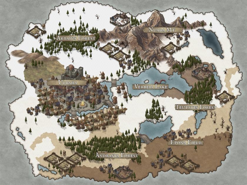 울티오르: 제국의 북쪽에 위치한 설원의 땅. 툰트라를 마주보고 세워진 왕국. 눈보라가 멈추지않는 이곳은 무를 숭상하는 부족국가에서 왕국으로 발전하였으며 왕국으로 선포될 당시 제국와 우호적인 관계를 맺어, 지금까지도 교류가 이어지고 있는 왕국이다.
