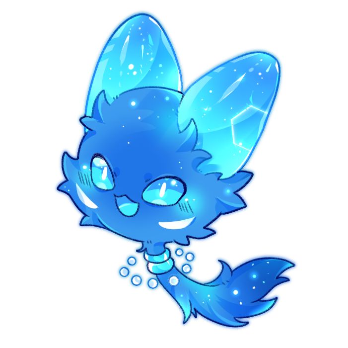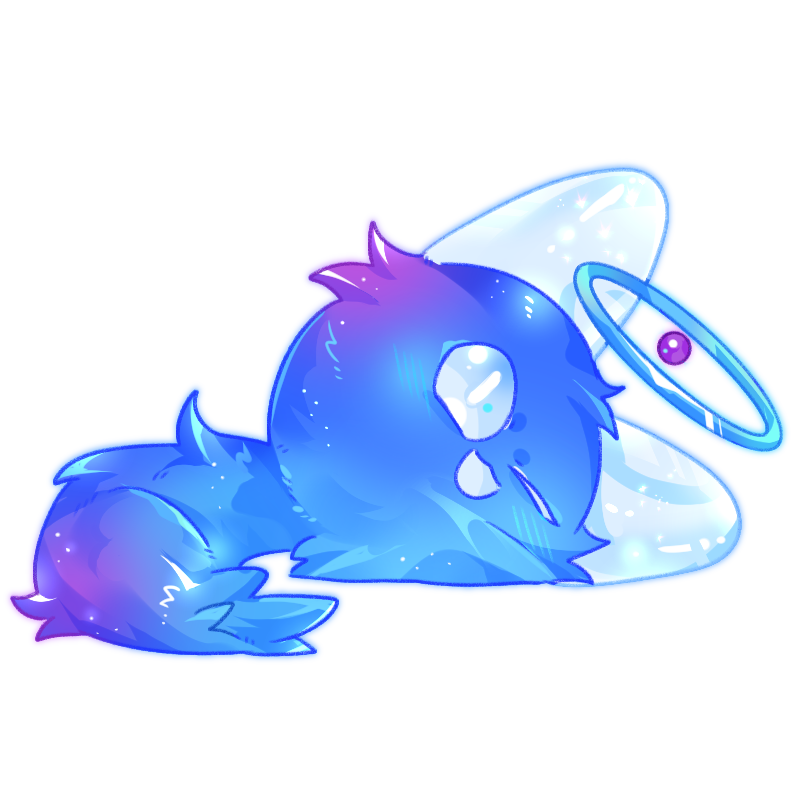 우주빛의 털위에서 구른 푸르고 투명한 피그밋입니다.
